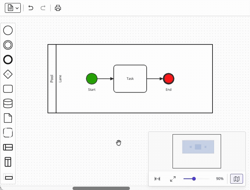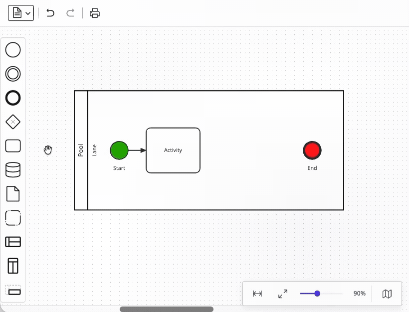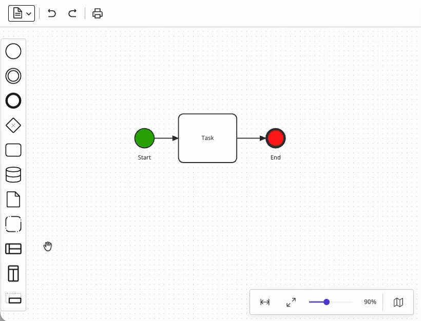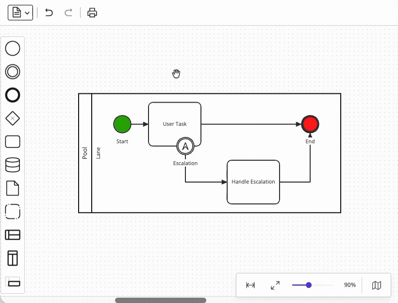 Supporting undo/redo functionality in your modeling UI sounds straightforward until you consider compound operations. A single user action (such as deleting a task) may involve removing an element, removing all of its connected sequence flows, detaching boundary events, and perhaps even updating the parent container's layout – all of which must be reversed as a single atomic operation. Diagramming libraries including bpmn-js and JointJS address this challenge with command grouping capabilities, but a custom modeler UI would need to implement this functionality independently.